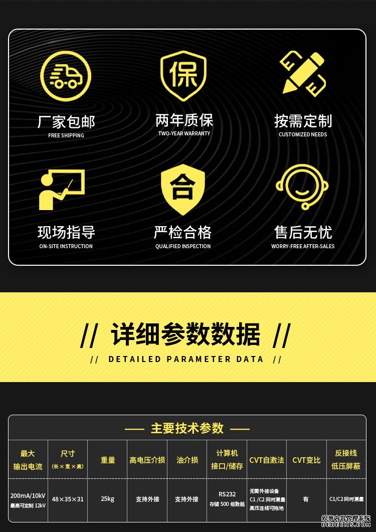电容量范围:内施高压:3pF~60000pF/10kV 60pF~1.2μF/0.5kV